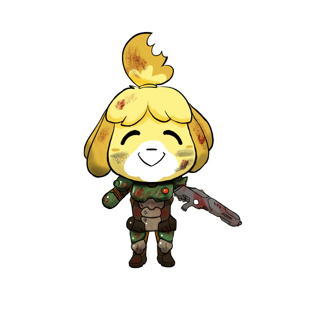 With Animals Crossing and DOOM releasing, we have made a sticker that combines our love for funny animal characters and slaying demons!